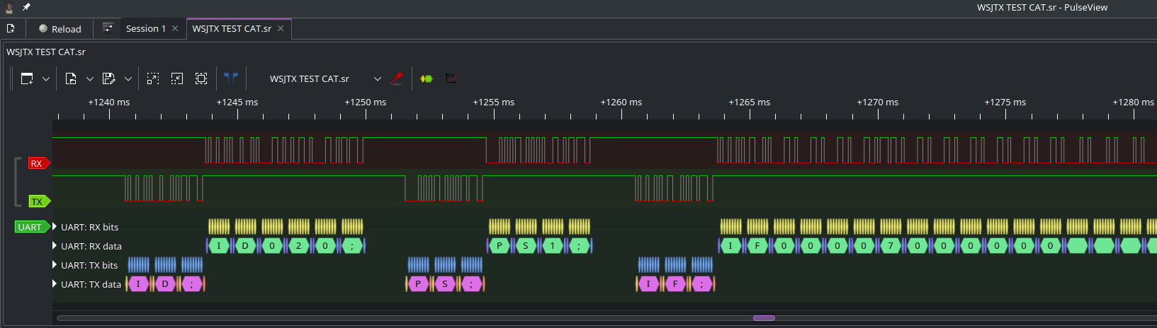 PulseView showing portion of the communication between WSJT-X and a "TS-480"